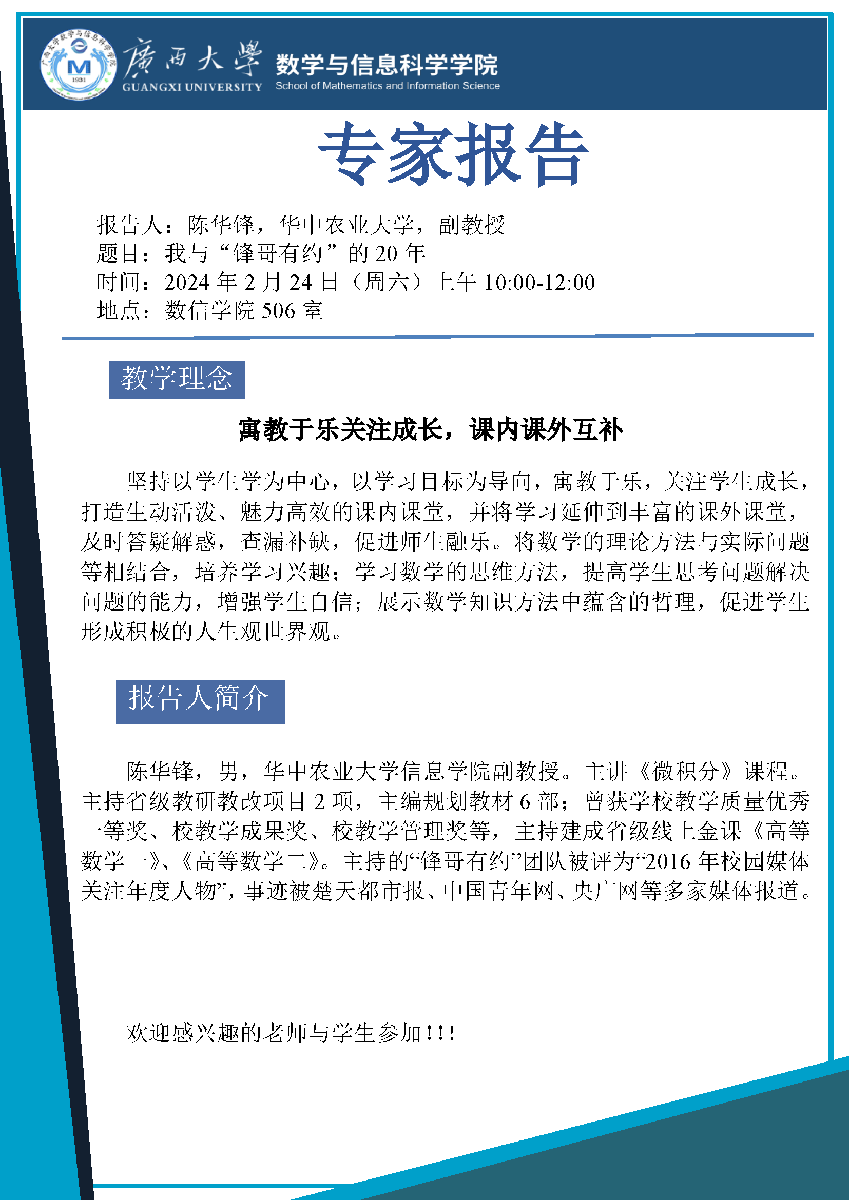 学术报告:数学学习和研究的一点感想