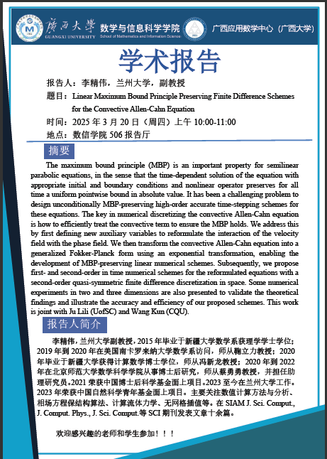 学术报告:Linear Maximum Bound Principle Preserving Finite Difference Schemes