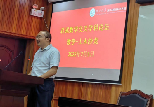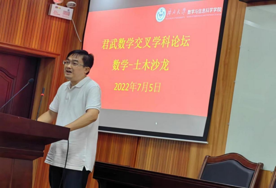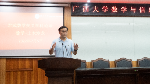 为深化英国正版365首页官网学科交叉融合工作,推动学科协调发展,发挥数学作为基础学科的支撑作用,同时有力支持土木工程一流学科建设,挖掘应用数学与土木工程学科的交叉合作潜力,7月5日下午,英国正版365首页官网首届“君武数学交叉学科论坛”之“数学—土木沙龙”在数信学院一楼报告厅举行。会议由数信学院院长郭真华主持。