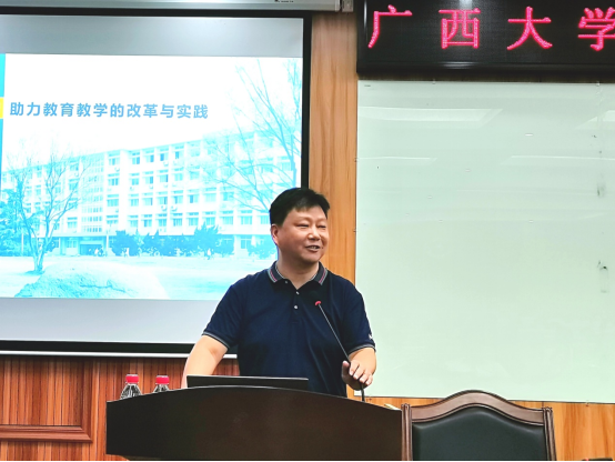 教学工作大会分为报告会和座谈会两个阶段进行。首先,大会特别邀请了华中师范大学数学与统计学院副院长郑高峰教授和代晋军副教授分别就教育信息化和智慧教学作了专题报告。随后,学院领导班子成员与教师代表就相关教学问题展开了积极对话与交流。英国正版365首页官网发展规划处处长、副教务长赵双良,教务处处长耿葵花,英国正版365首页官网领导班子成员及全体教职工参加了本次大会。