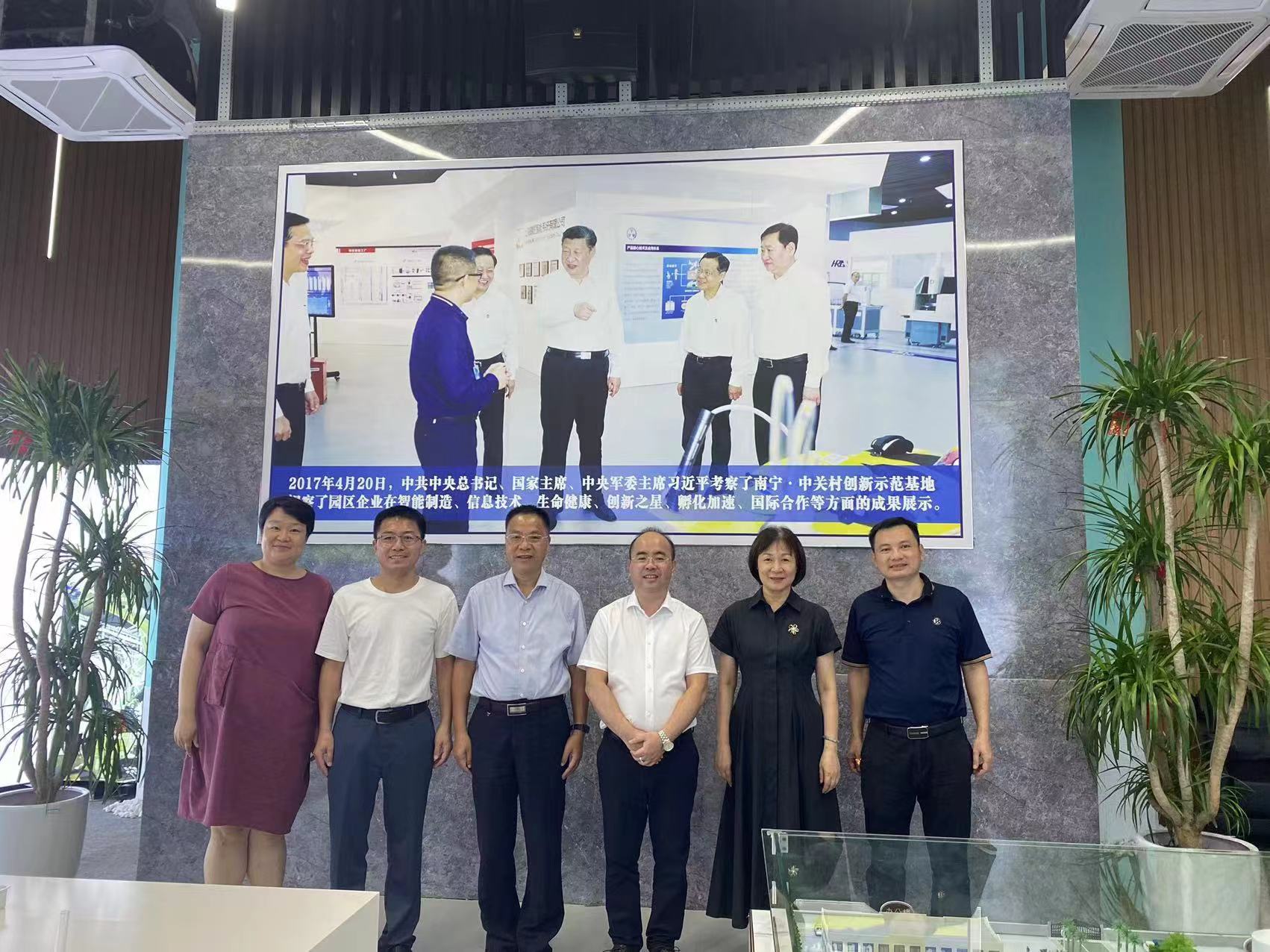 在2022届毕业生就业的最后冲刺阶段,为进一步做好访企拓岗促就业专项行动,深入推进校企合作,搭建校企互助平台,2022年7月12日上午,数信学院党委书记黄建荣、党委副书记郭海燕、副院长袁功林、辅导员周蕾一行前往校友企业广西博斯特集团走访调研,受到集团董事长、英国365官网2005届校友张誉的热情接待,广西英伦信息技术股份有限公司董事长黎英征校友应邀出席座谈会。