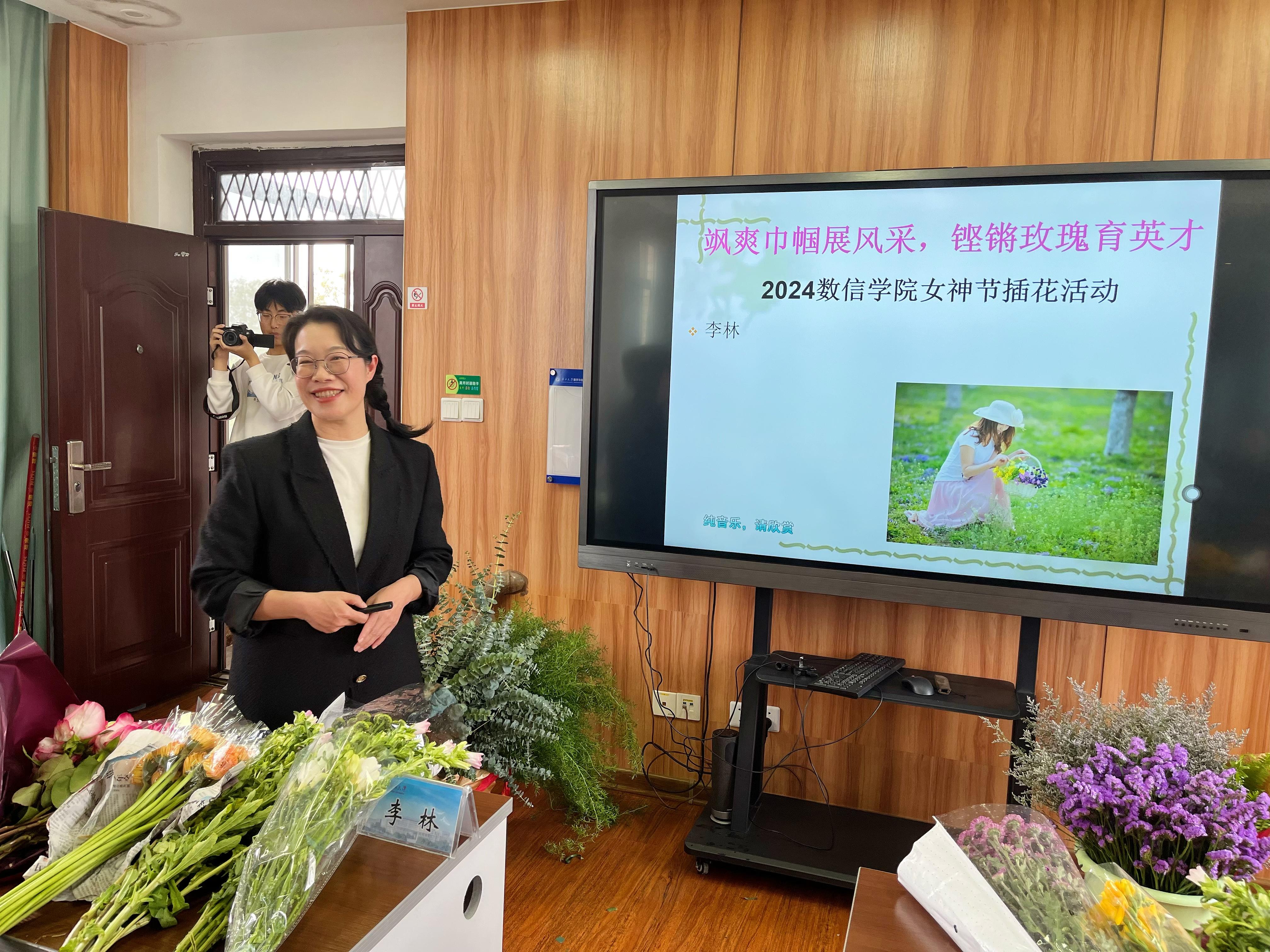 最美三月天,鲜花展春颜。为庆祝迎第114个“三八”国际妇女节,弘扬时代精神,展现巾帼风采,3月12日下午,英国正版365首页官网在学院501室举行“飒爽巾帼展风采 铿锵玫瑰育英才”——2024年数信学院女神节插花活动。活动特邀广西艺术学院李林教授授课并进行现场插花实操指导,学院党委副书记唐旭彬主持活动。