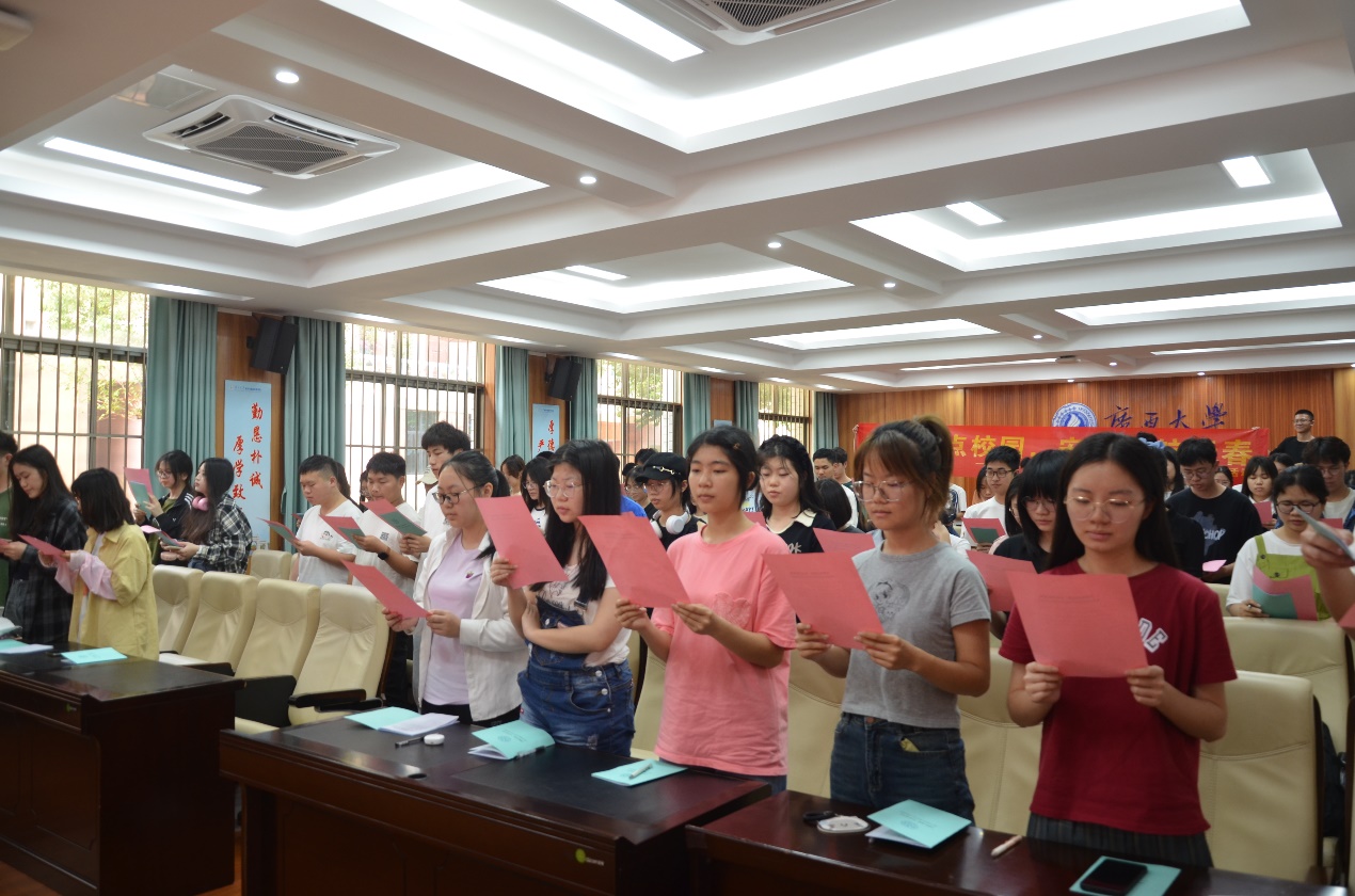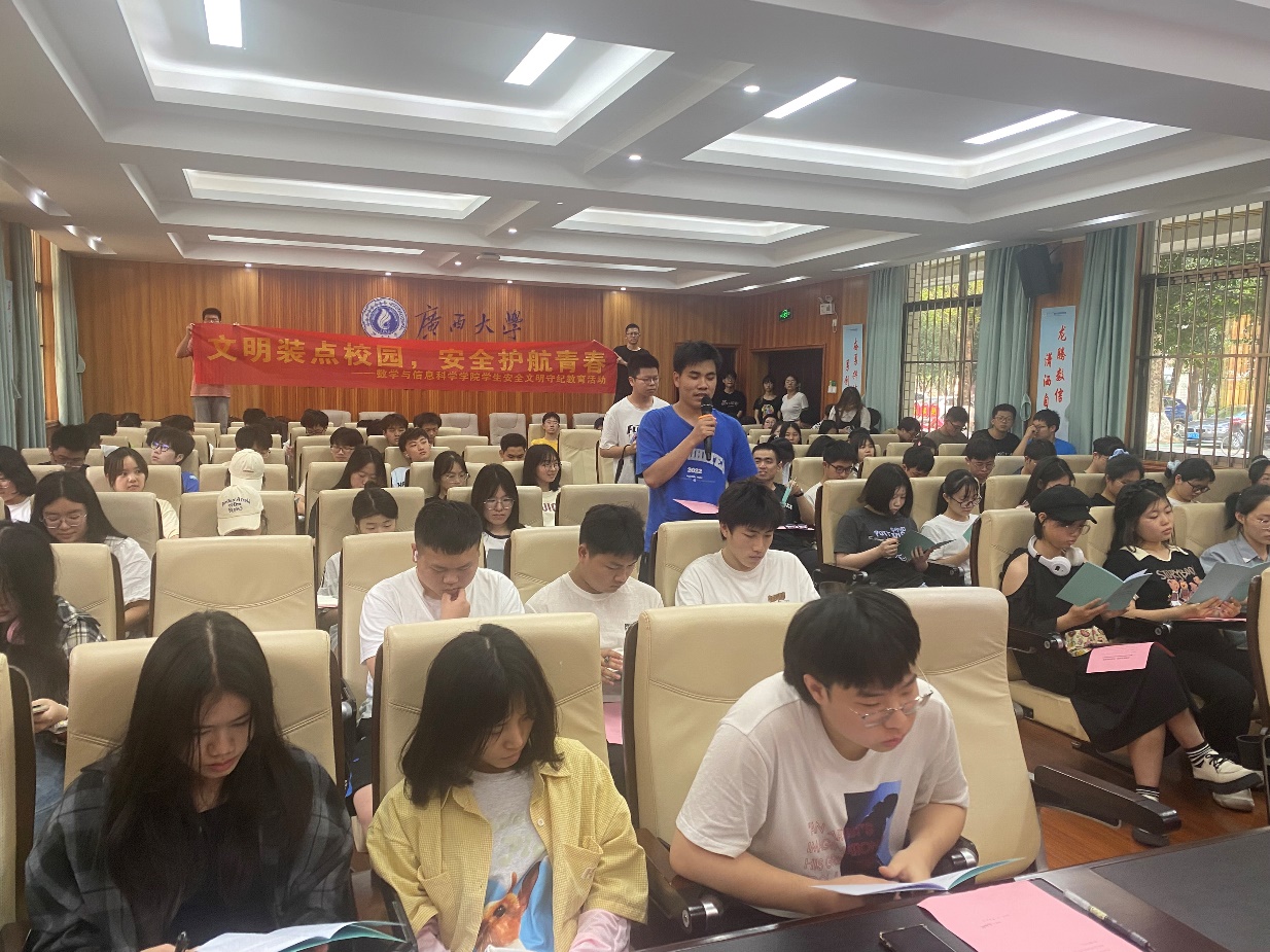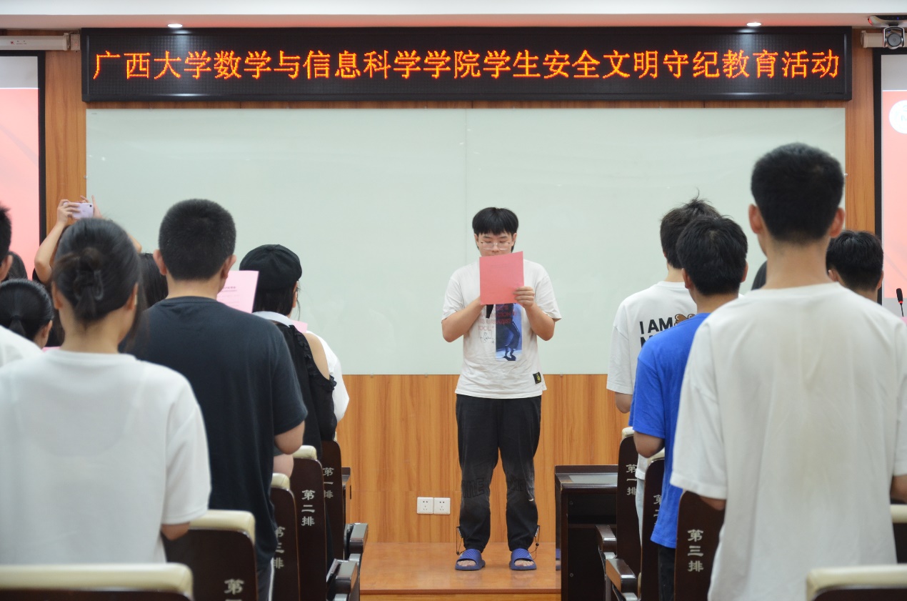 举行安全文明守纪承诺活动,学院党委副书记唐旭彬、学工组辅导员以及全体学生参加活动。