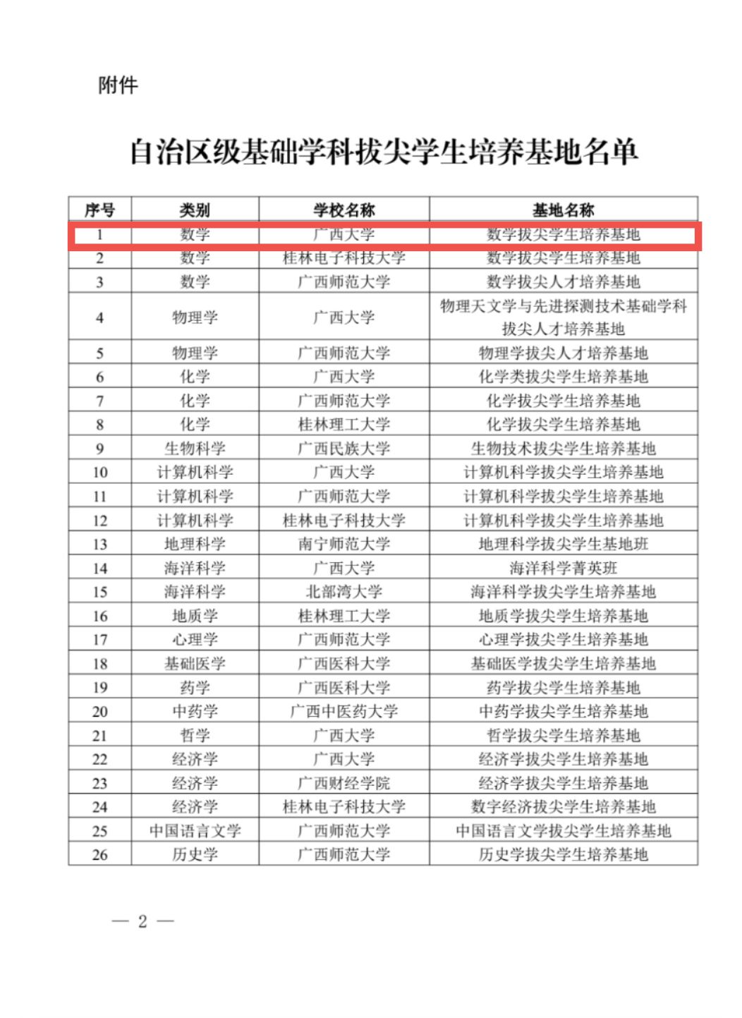近日,自治区教育厅公布了自治区级基础学科拔尖学生培养基地名单,英国365官网数学拔尖学生培养基地入选。全区共遴选确定26个自治区级基础学科拔尖学生培养基地,其中我校共7个基地入选自治区级基础学科拔尖学生培养基地。