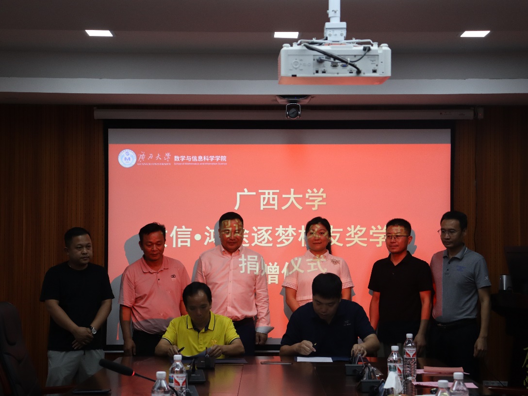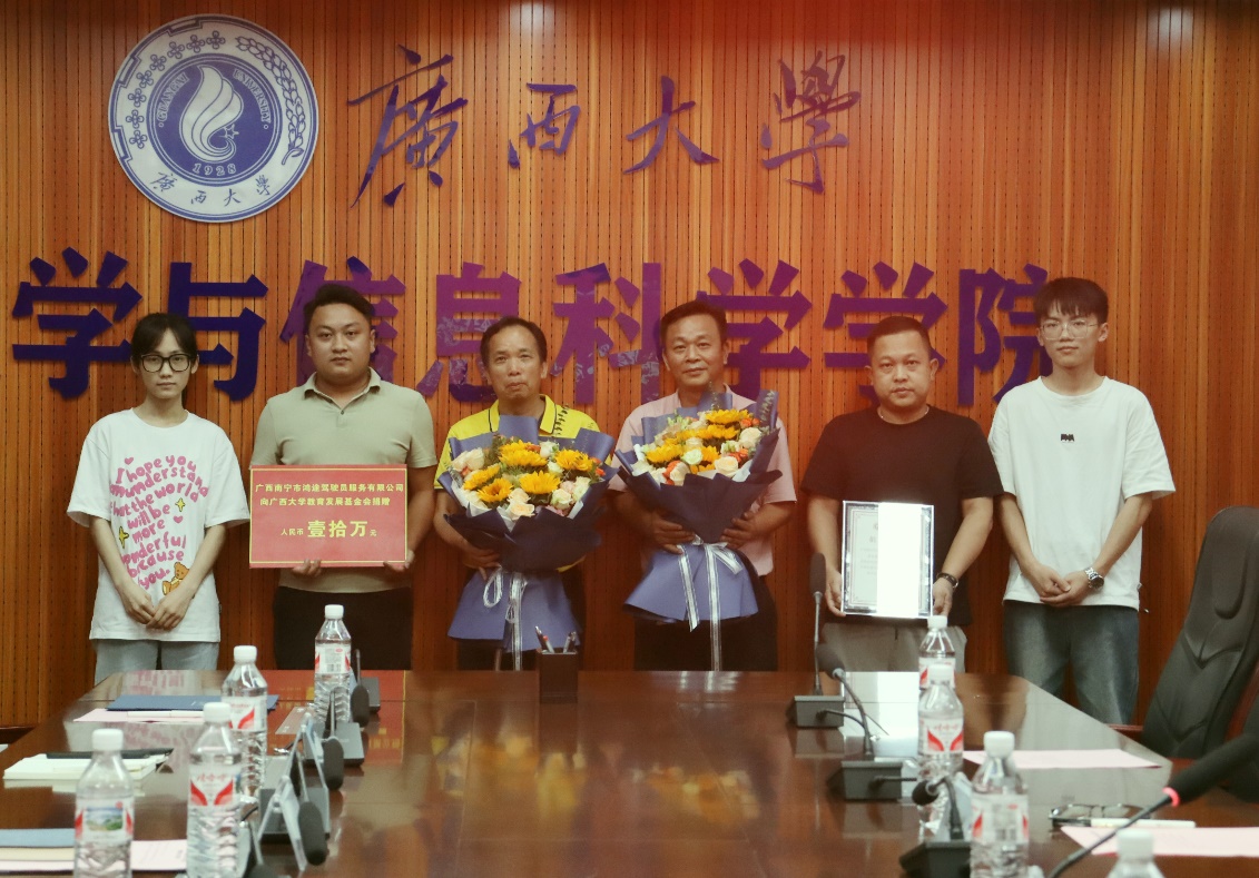 连建耀代表广西南宁市鸿途驾驶员服务有限公司向英国正版365首页官网教育发展基金会捐赠10万元现金,设立英国正版365首页官网数信·鸿途逐梦校友奖学金,用于奖励数信学院优秀毕业生。