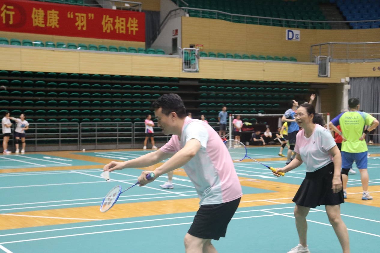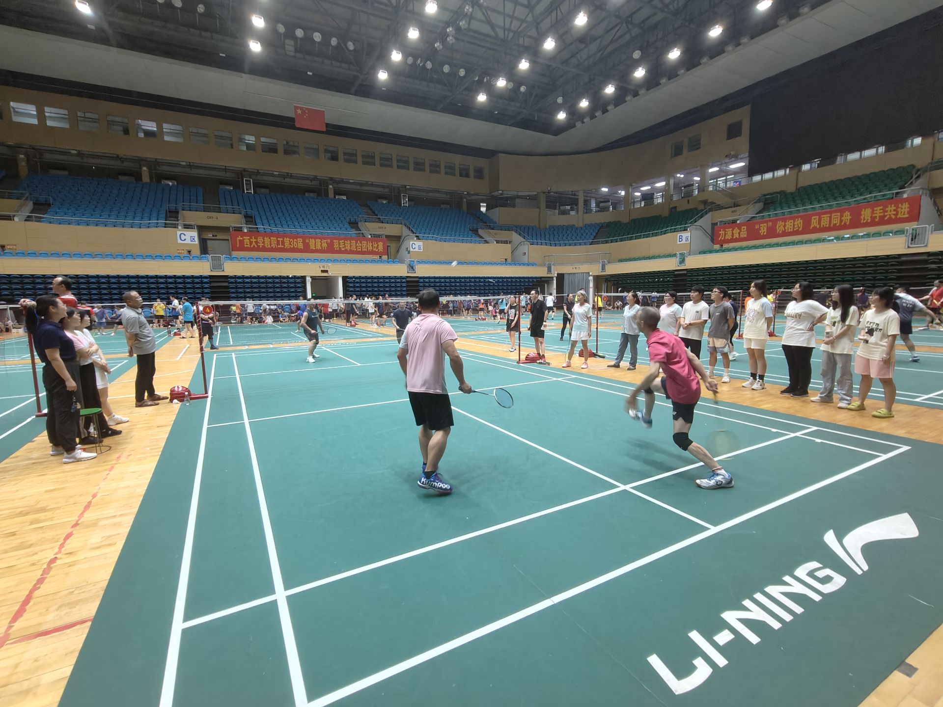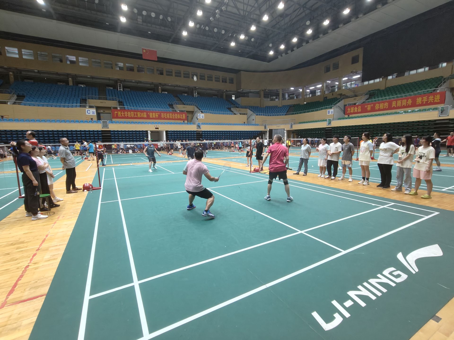 比赛以混合团体赛形式进行,设男双、女双和混双等项目,尽管老师们在年龄、身高等方面存在差异,但丝毫不影响赛场上的出色发挥。女双的联袂出击,男双的鱼跃扑救,混双的珠联璧合,队友们无声的默契,巧妙的配合,给在场观众带来一场场视觉盛宴,场外的学生啦啦队加油叫好此起彼伏。最终学院教职工羽毛球队以小组第一的成绩成功晋级第二阶段的比赛。