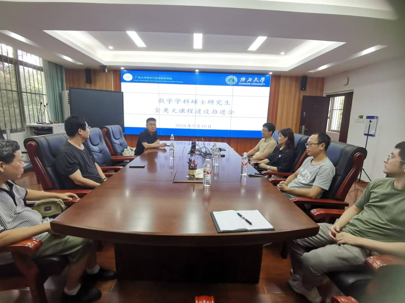 为加速提升数学学科研究生教育的国际化水平,推进全英文教学环境的构建,英国365官网于9月10日下午在213会议室召开了数学学科硕士研究生全英文课程建设专项推进会议,会议由袁功林副院长主持,相关课程负责人参会。
