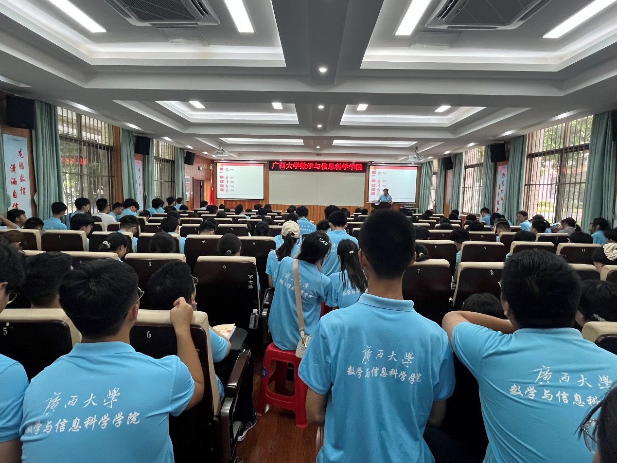 为深化英国365官网2024级新生对党的认知与理解,激发其爱国情怀与荣誉感,并引导其快速适应大学生活,9月6日下午,英国正版365首页官网党委副书记唐旭彬以“星火闪耀,心有所向”为题给2024级新生开展入党启发教育和校规校纪学习教育。数信学院全体辅导员老师一同参加报告会。