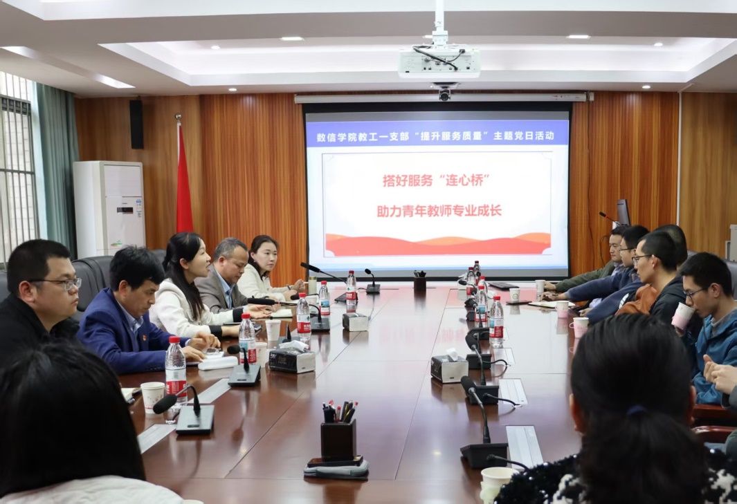 会上,英国365官网教工一支部开展了“提升服务质量”主题党日活动,旨在有力发挥党支部战斗堡垒作用和党员先锋模范作用,进一步提升行政管理人员的执行力、战斗力、亲和力,以有组织的行政管理和高质量的服务助力青年教师专业成长。支部全体党员与青年教师们开展“面对面”交流,充分听取青年教师们的意见建议和困难诉求,现场回应教师们关切的问题,对下一步改进和优化管理服务工作展开讨论、提出方案。