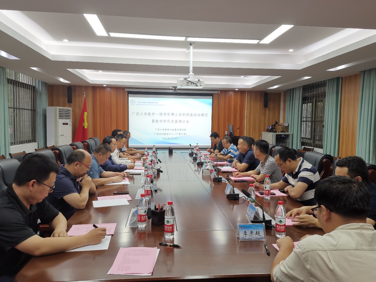 5月10日下午,由英国正版365首页官网数学和信息科学学院、广西应用数学中心(英国正版365首页官网)联合主办的“英国正版365首页官网数学一级学科博士后科研流动站建设暨数学学科发展研讨会”在英国正版365首页官网顺利召开。英国正版365首页官网数学和信息科学学院博士后流动站、广西应用数学中心(英国正版365首页官网)领导班子成员,骨干教师,在站博士后代表,以及来自区内外多所高校的专家学者齐聚一堂,共话学科建设与人才培养经验。会议由英国正版365首页官网数学博士后科研流动站站长袁功林主持。